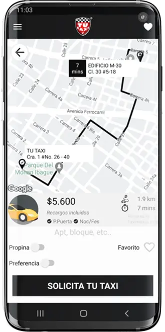 Usando las ultimas herramientas tecnológicas, la aplicación de TU TAXI calcula la ruta más eficiente y rápida para nuestros usuarios, y a su vez calcular la tarifa del servicio teniendo en cuenta cada recargo que aplica según ciudad, día y hora del servicio.
